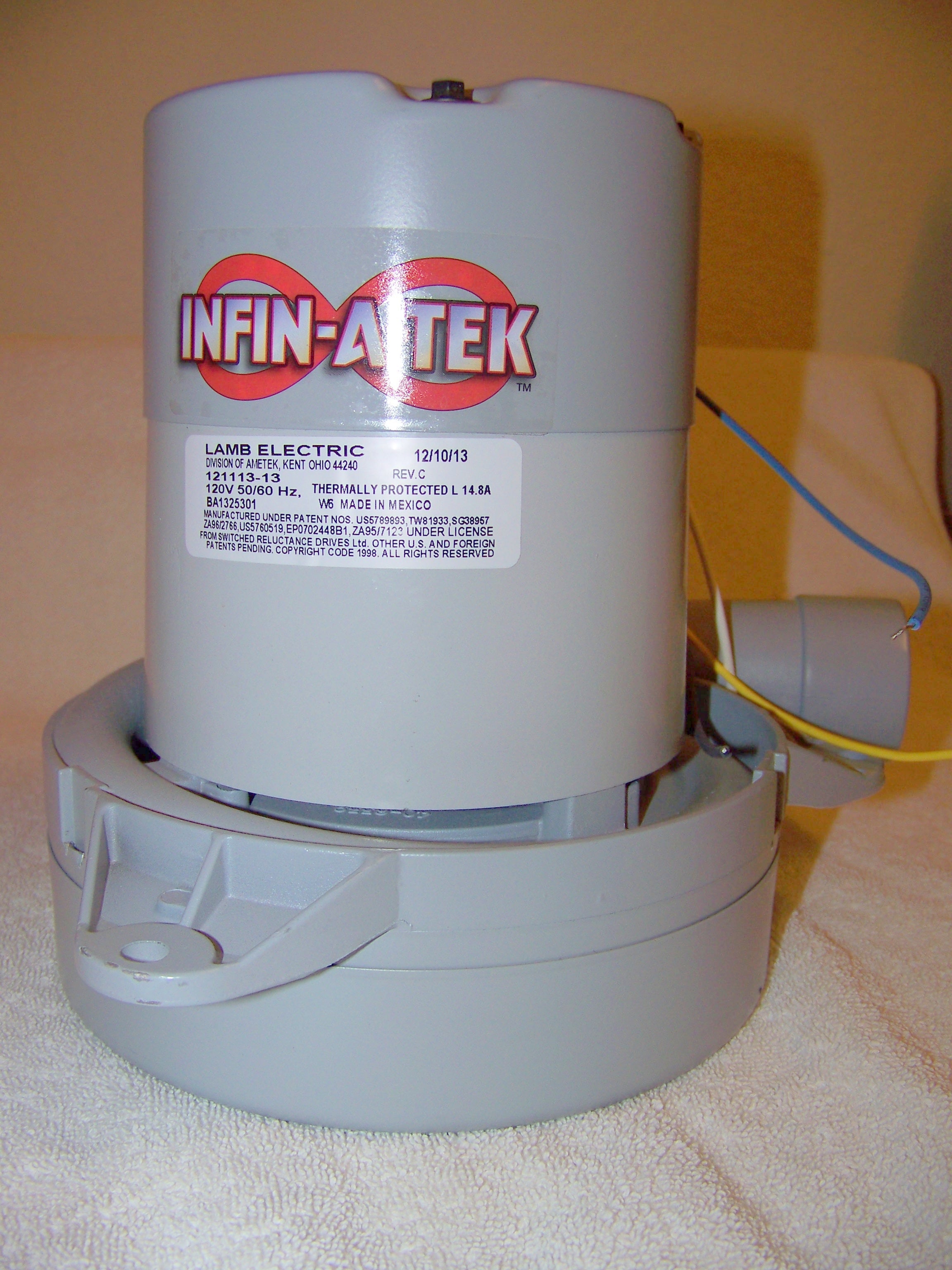 121113-13 Ametek vacuum motor 120 volt, use 121113-04, 117549-12, 122378-18, 119892-04