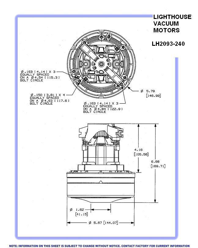 LH2093-240 Lighthouse vacuum motor, 5.7in., 240V, 2 stage