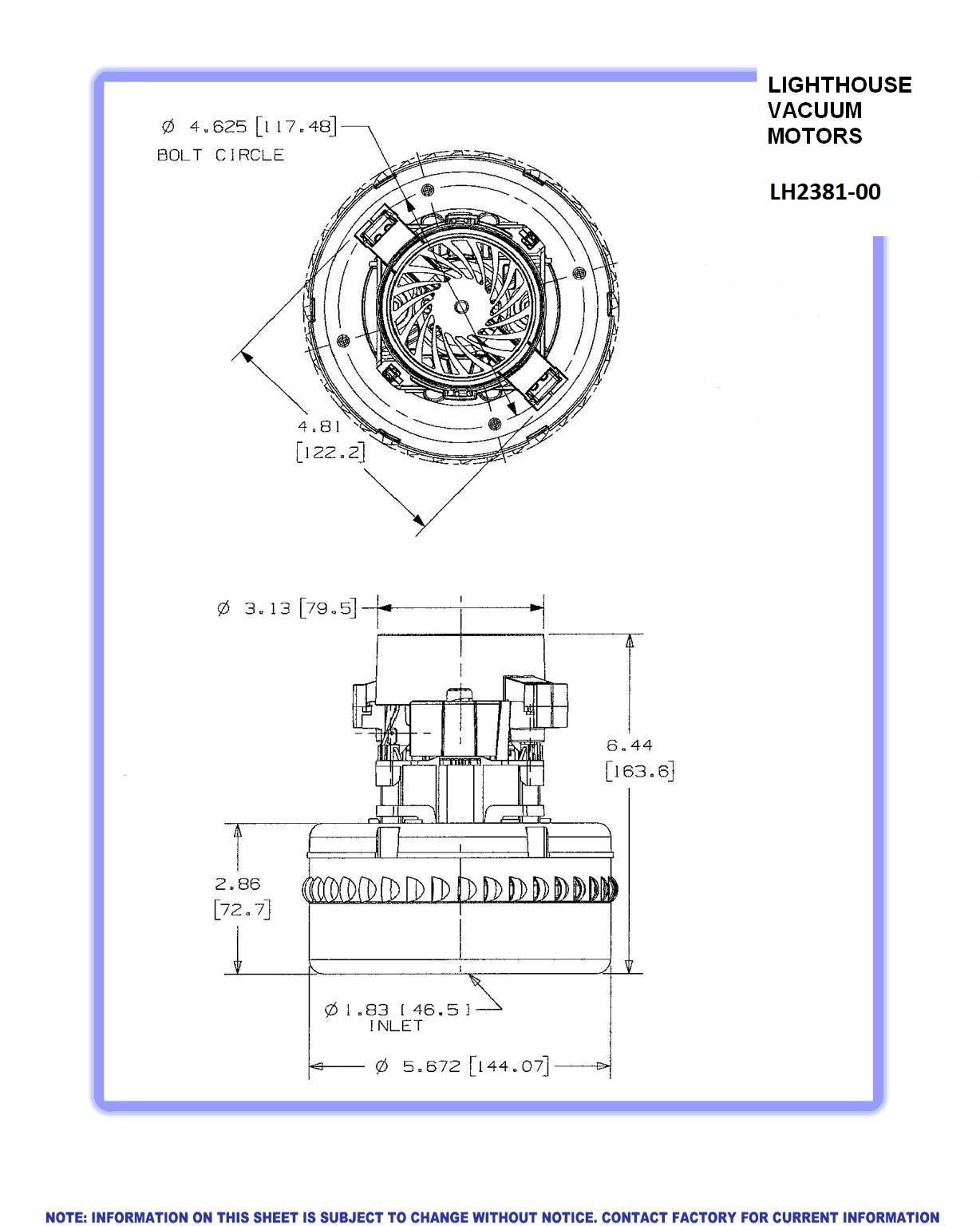 LH2381-00 Lighthouse vacuum motor, 5.7in., 120V, 2 stage
