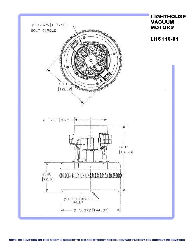 LH6110-01 Lighthouse vacuum motor, 5.7in., 240V, 2 stage