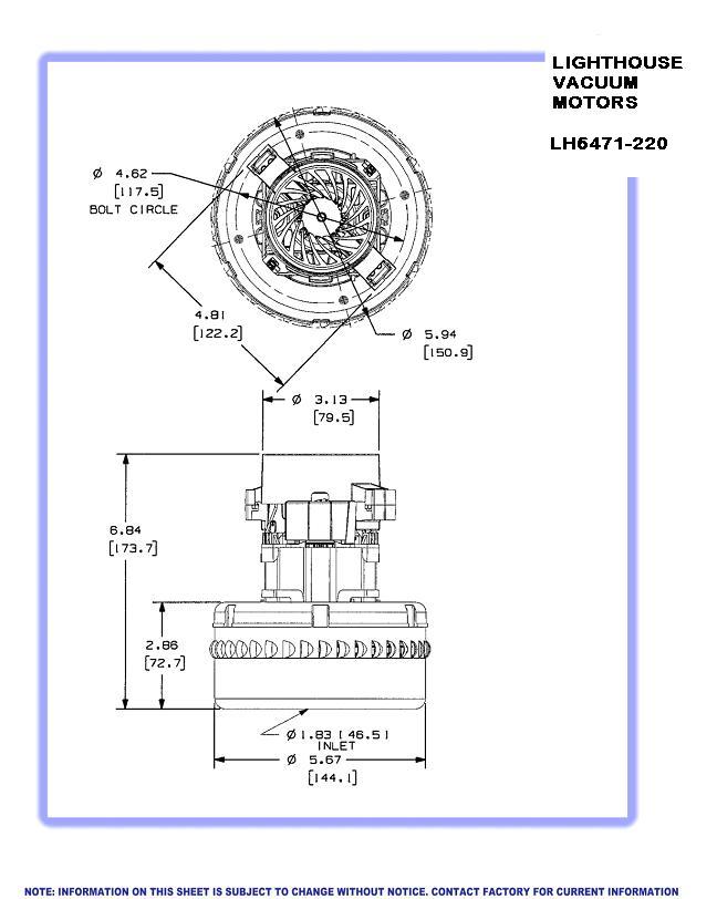 LH6471-220 Lighthouse vacuum motor, 5.7in., 220V, 2 stage