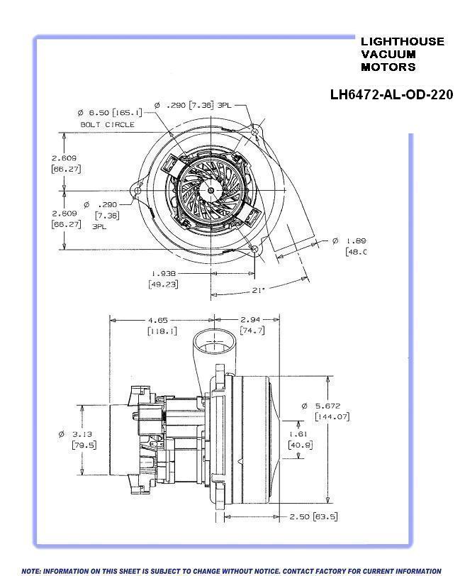 LH6472-AL-OD-220 Lighthouse vacuum motor, 5.7in., 220V, 2 stage