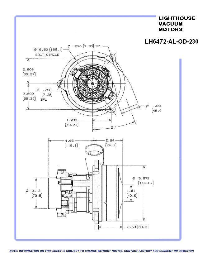 LH6472-AL-OD-230 Lighthouse vacuum motor, 5.7in., 230V, 2 stage