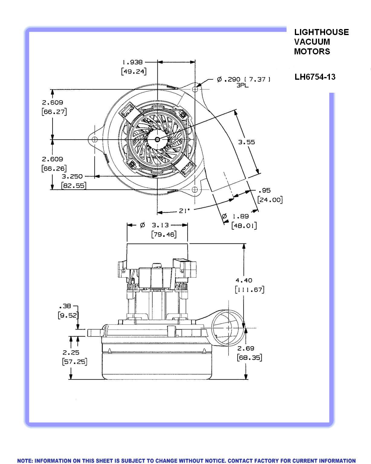 LH6754-13 Lighthouse vacuum motor, 5.7in., 120V, 2 stage