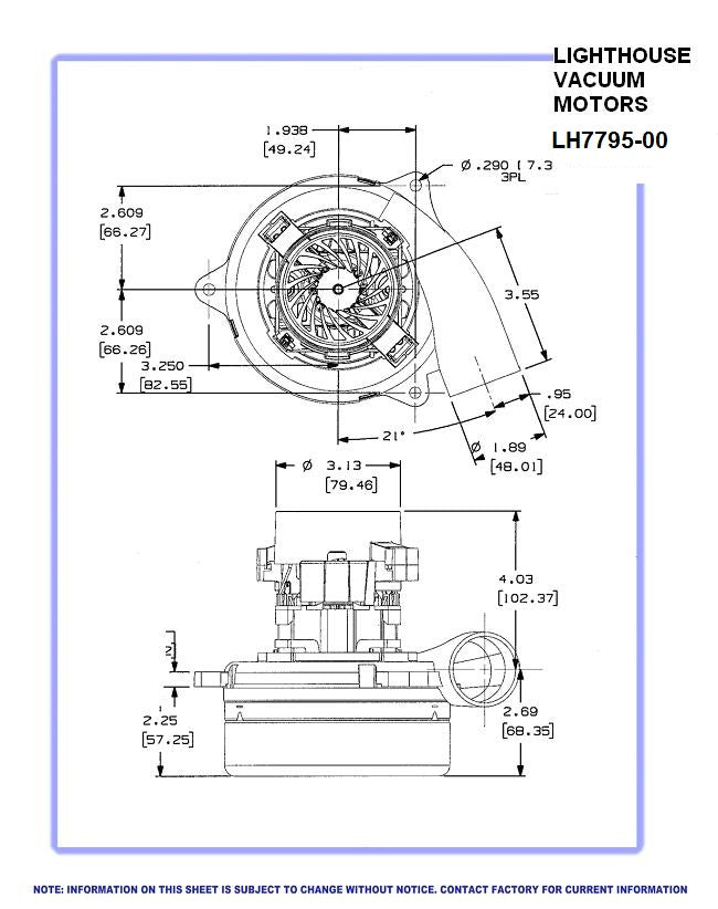 LH7795-00 Lighthouse vacuum motor, 5.7in., 120V, 2 stage