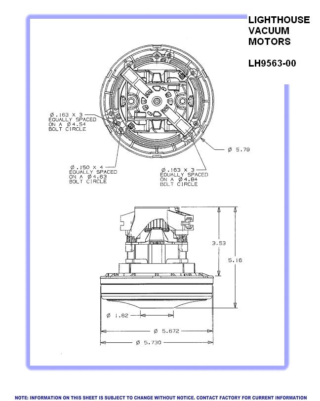 LH9563-00 Lighthouse vacuum motor, 5.7in., 240V, 1 stage