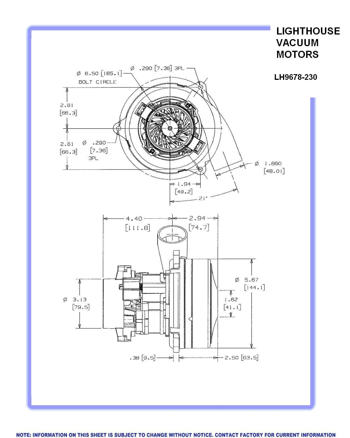 LH9678-230-AL Lighthouse vacuum motor, 5.7in., 230V, 2 stage
